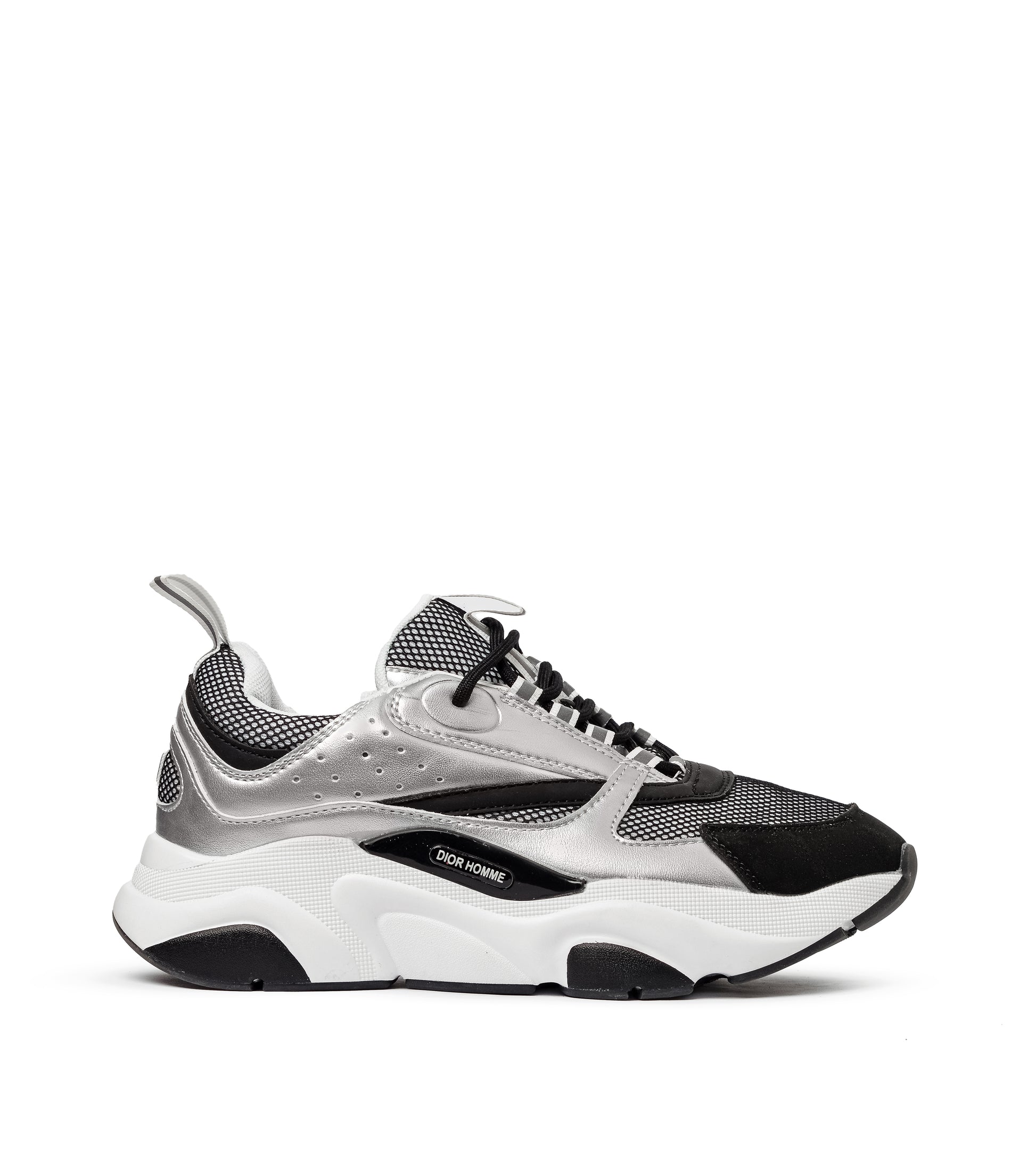 DIOR B22 HOMME TECHNICAL MESH & SMOOTH CALFSKIN LEATHER BLACK SILVER GREY SNEAKERS